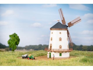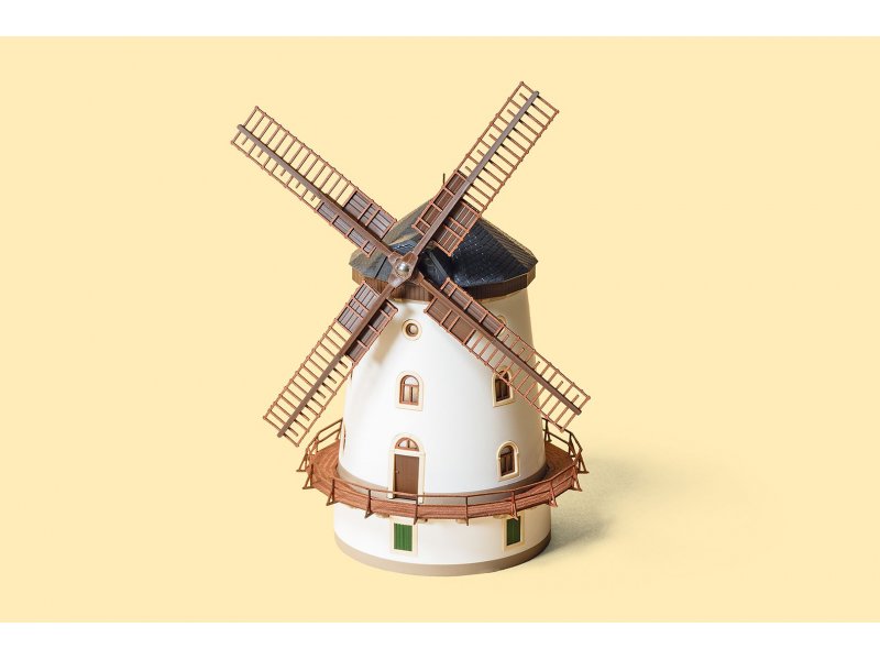 Die alte denkmalgeschützte Turmholländer-Windmühle steht in malerischer Umgebung direkt am Elberadwanderweg in Dresden-Gohlis. Die von 1828 bis 1832 durch den Gutsbesitzer Hefter errichtete Windmühle wird heute als Museum und Gaststätte genutzt und diente als Vorbild für die authentische Umsetzung unseres Modells. Für eine besonders realistische Gestaltung lässt sich während des Baus des Kunststoffmodells mit Lasercutteilen der Motor Art. 58 200 integrieren und ermöglicht so den Antrieb des Flügelrades.