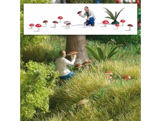 Hockender Mann mit gesammeltem Pilz. Mit Farnpflanze und 14 weiteren PilzenAngaben zur Produktsicherheit