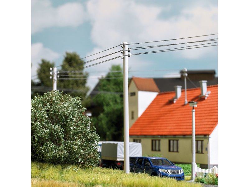 für 12 Freileitungsmasten in Betonoptik mit filigranen Isolatoren.