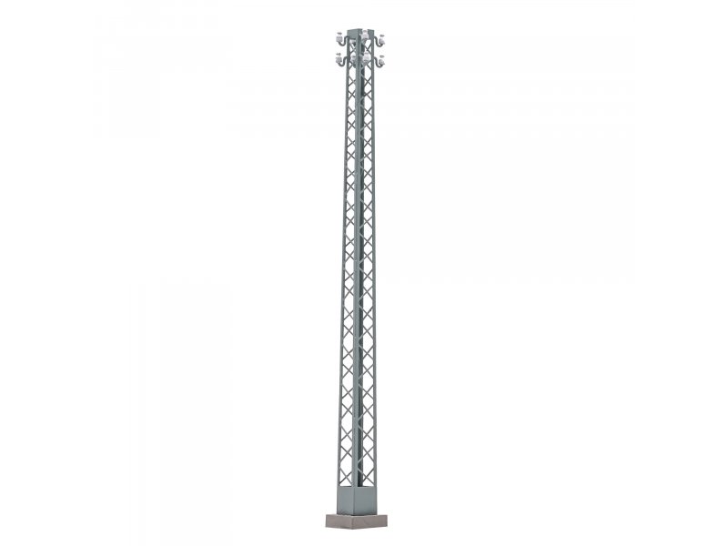 Gittermast für Freileitungen in edler Metallausführung und mit filigranen Isolatoren. Fertigmodell.
