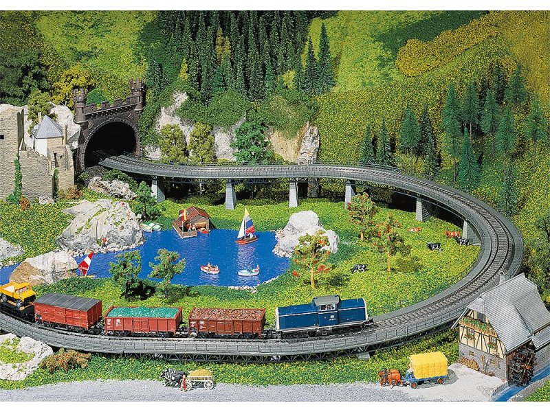 Die Gleisbetten sind für die Aufnahme von Modell- und C-Gleisen geeignet. Zur Verlängerung einer Auf- bzw. Abfahrt sind weitere Pfeiler (Art. 120473), gerade Gleisbetten (Art. 120474) und gebogene Gleisbetten (Art. 120476) erhältlich.