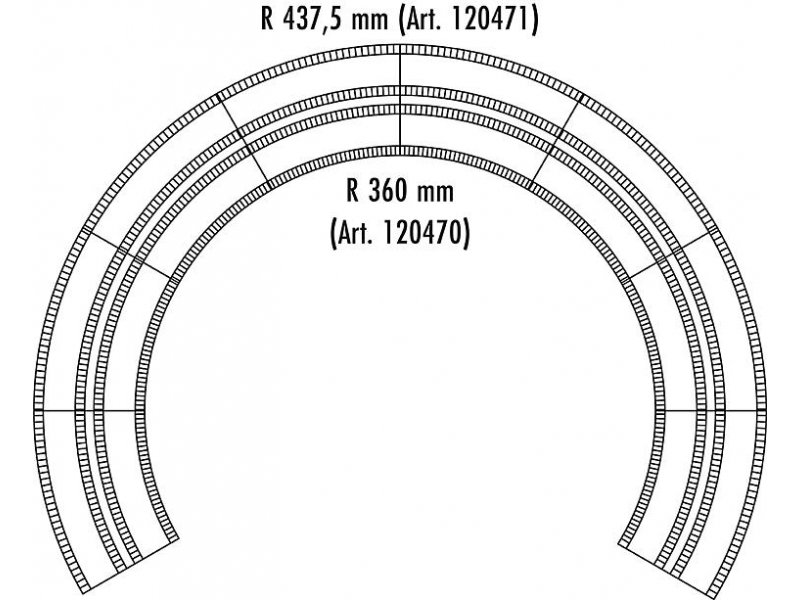 Diese Teile können für den Bau eines Parallelkreises (Außen­radius R 437,5 mm) zur Auf- und Abfahrt 120470 verwendet werden.