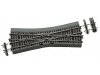 Einfache Kreuzungsweiche EKW15 für Handbetrieb, mit Bettung. „Englische“ Bauart mit innenliegenden Zungen. Länge 230 mm (Standardlänge), Kreuzungswinkel 15°, Abzweigradius 531 mm.