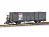 Modell eines 2-achsigen gedeckten Güterwagens in der Ausführung als Privatwagen der Fa. Pfleiderer aus Neumarkt in der Oberpfalz. Originalgetreue Farbgebung und Beschriftung der Epoche IV. Seitliche Türen zum Öffnen. Metallradsätze.