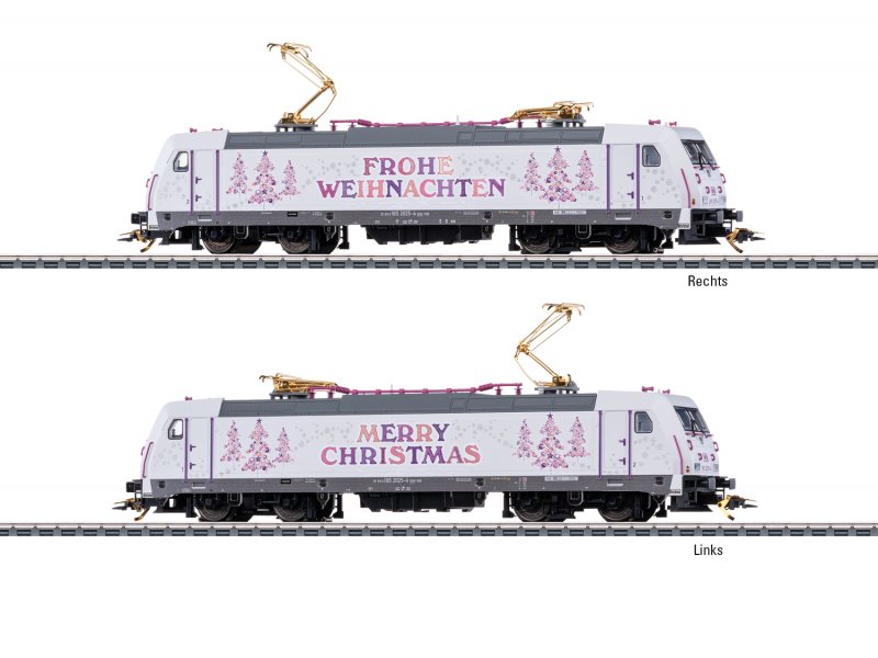 Die besondere Geschenkidee zu Weihnachten. Weihnachtlich gestaltetes Modell. Pantographen und Kupplungsbügel hochwertig mit 24-karätigem Gold vergoldet. Lokgehäuse aus Metall. Separat angesetzte Griffstangen an den Lokfronten. mfx-Decoder mit umfangreichen Licht- und Soundfunktionen. Besondere Geräuschfunktionen: "Ihr Kinderlein kommet" und "Fröhliche Weihnacht überall".