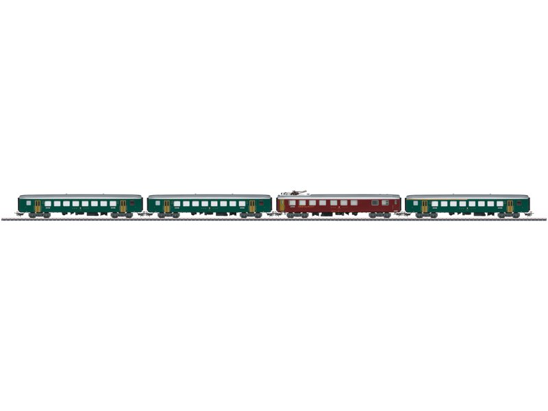 Alle Wagen mit Relex-Kupplungen und Gummiwulst-Übergängen. Aufgedruckte Zuglaufschilder. Unterschiedliche Betriebsnummern. Jeder Wagen in gekennzeichnetem Karton einzeln verpackt, in Anlehnung an die historische Verpackungsgestaltung der damaligen Zeit. Zusätzliche Umverpackung.