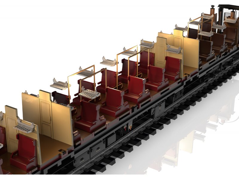 Komplette Neukonstruktion der Halberstädter Mitteleinstiegswagen. Mehrfarbige Inneneinrichtungen. Alle Wagen mit serienmäßig eingebauter LED-Innenbeleuchtung. In jedem Wagen ist ein Pufferkondensator zur Überbrückung von kurzfristigen stromlosen Stellen eingebaut. Alle Wagen mit serienmäßig eingebauter Zugschlussbeleuchtung, diese ist ab Werk bei einem Wagen eingeschaltet. Ausgestattet mit trennbaren, stromführenden Kurzkupplungen. Die Innenbeleuchtung funktioniert im Verbund mit dem Schlusslichtwagen, die vorgegebene Fahrzeugreihenfolge ist dafür einzuhalten. Typspezifisch gestaltete Drehgestelle, Dachformen, Seitenwände und Unterböden mit vielen angesetzten Details. Pufferhöhe nach NEM. Bremsschläuche, Heizleitungen und Schraubenkupplungen liegen als separat ansteckbare Teile bei. Alle Wagen einzeln verpackt in zusätzlicher Umverpackung.