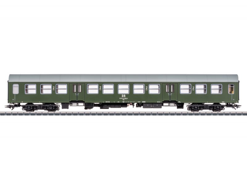 Komplette Neukonstruktion des Halberstädter Mitteleinstiegswagen. Mehrfarbige Inneneinrichtung. Serienmäßig eingebaute LED-Innenbeleuchtung mit Pufferkondensator zur Überbrückung von kurzfristigen stromlosen Stellen. Ausgestattet mit trennbaren, stromführenden Kurzkupplungen. Die Innenbeleuchtung funktioniert im Verbund mit dem Schlusslichtwagen aus dem Set 42580, die vorgegebene Fahrzeugreihenfolge ist dafür einzuhalten. Typspezifisch gestaltete Drehgestelle, Dachform, Seitenwände und Unterboden mit vielen angesetzten Details. Pufferhöhe nach NEM. Bremsschläuche, Heizleitungen und Schraubenkupplungen liegen als separat ansteckbare Teile bei.