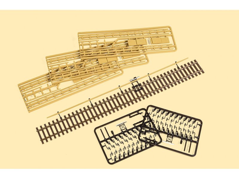 Die elektrischen Triebzüge der Berliner S-Bahn bekommen ihre Energie über eine seitliche Stromschiene zugeführt. Der Bausatz eignet sich hervorragend für die realistische Umsetzung dieser Vorbildsituation. 12 Stromschienenelemente á 168 mm (individuell biegbar und kürzbar), 3 Stromschienenaufläufe á 35 mm und 3 Stromschienenaufläufe á 63 mm nebst den zugehörigen Trägern für 2310 mm Strecke. Zwei Nachbildungen der typischen Fahrsperren (Zugbeeinflussungssystem) ergänzen den Bausatz. Stromschiene/Fahrsperre ohne elektrische/mechanische Funktion. Mit ausführlicher Anleitung.