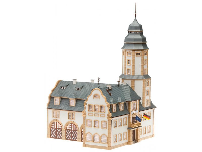 Ein beeindruckendes Rathaus aus hellem Sandstein der Jahrhundertwende, ausgestattet mit einem repräsentativen Balkon. Der Anbau beherbergt eine dreiständige Feuerwache mit beidseitig öffnenden Ausfahrtstoren sowie einem hohen Löschübungs- und Schlauchtrockenturm. Die maximalen Fahrzeugabmessungen betragen 117 mm in der Länge, 38 mm in der Breite und 50 mm in der Höhe. Mit geschwungenen Ziergiebeln, Dachgauben und Dachsirenen verschönert das Modell jede Anlage. Als »Modell des Jahres 1987« gilt die „Knuffinger Feuerwehr“ heute als eines der Highlights im Miniatur Wunderland in Hamburg.