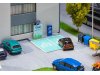 Gut für die Umwelt. Ladestation mit Parkflächen für zwei Elektrofahrzeuge. Modell ohne Funktion. Dieser Bausatz enthält: 11 Einzelteile in 1 Farbe, 1 Deko und 1 Bauanleitung. Verwenden Sie zum Basteln FALLER EXPERT Plastikkleber.