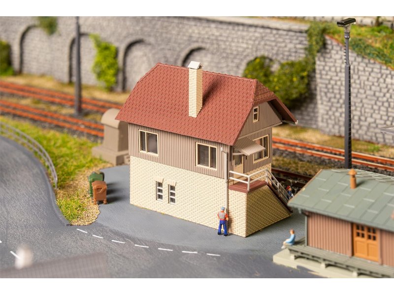 Abreisen, Umsteigen, Ankommen – mit diesem Bahnhofs-Set erwacht der Bahnbetrieb zum Leben! Ein moderner Bahnsteig mit gläsernem Dach empfängt die Reisenden. Der Bahnhof selbst strahlt mit seinem roten Ziegeldach, dem graugrünen Putz, dem hölzernen Anbau und den großen Holztüren einen rustikalen Charme aus. Im sandfarbenen Stellwerk werden währenddessen Weichen gestellt und Fahrpläne überwacht. Der markante Wasserturm erinnert an die Zeit der Dampflokomotiven. Ein rustikales Toilettenhaus sorgt für den Komfort der Miniaturbesucher. Weiteres Zubehör zum Ausschmücken der Szenerie ist ebenfalls enthalten. Ein tolles Set für alle Bahnbegeisterten! Inhalt: Bahnhof, Bahnsteig, Stellwerk, Wasserturm, Toilettenhaus