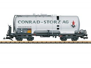 Modell eines RhB Kesselwagens der Bauart Za in der Gestaltung der Conrad-Storz AG. Originalgetreue Farbgebung und Beschriftung der Epoche VI. Vorbildgerechte neue Kesselbühne ohne Geländer. Der Kessel lässt sich befüllen und entleeren. Metallradsätze.