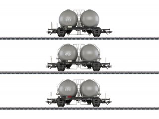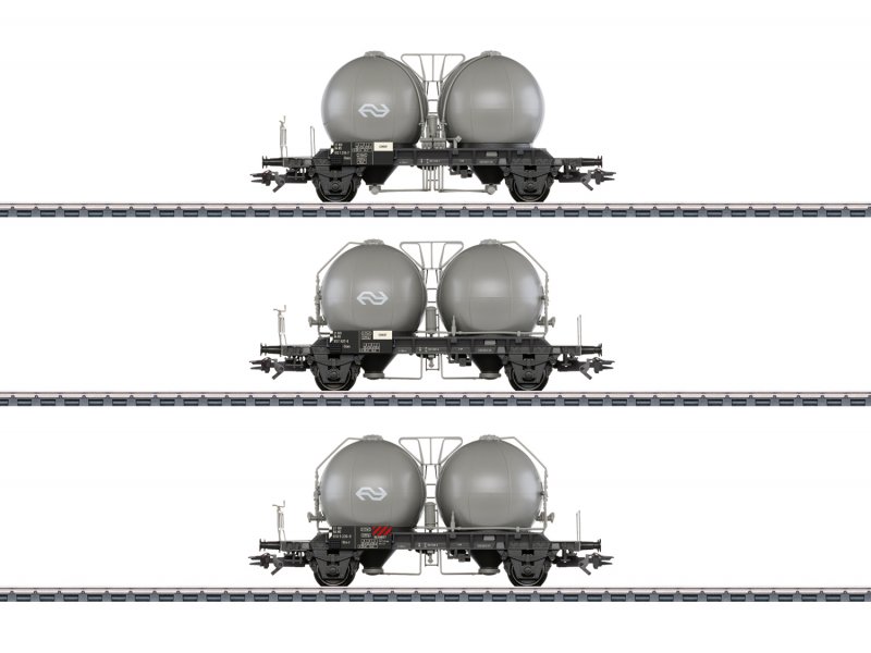 Fahrgestelle mit durchbrochenen Rahmen. Leitungen, Bühnen und Armaturen eingesetzt. Alle Wagen mit unterschiedlichen Betriebsnummern. Wagen einzeln verpackt, mit zusätzlicher Umverpackung.