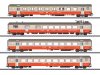 Komplette Neukonstruktion. Serienmäßig eingebaute LED-Innenbeleuchtung mit Pufferkondensatoren. Salonwagen mit beleuchteten Tischlampen. Ein Gepäckwagen mit Zugschlussbeleuchtung. Stromführende Kupplungen. Alle Wagen in unterschiedlicher und sehr detaillierter Ausführung. Inneneinrichtung der...