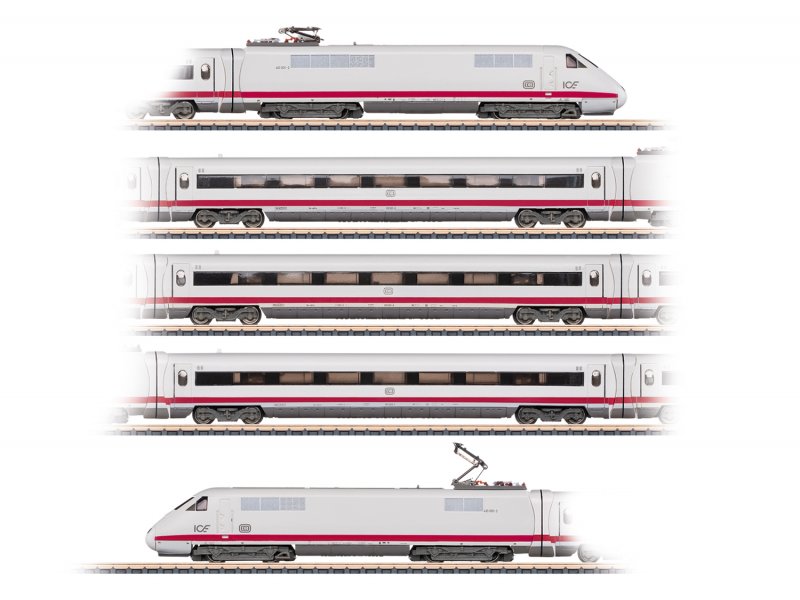 Vorbildgerechte 5-teilige Einheit. Triebköpfe mit Glockenankermotoren. LED-Spitzenbeleuchtung warmweiß/rot im Wechsel der Fahrtrichtung. LED-Innenbeleuchtung. Oberleitungs-Umschaltschrauben unsichtbar nach innen verlegt. Elektrische Oberleitungsfunktion.