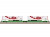 Formvariante, Fahrgestell aus Metalldruckguss, Drehgestelle Typ Y 25, mit Kinematik für Kurzkupplung. Jeder Tragwagen ist mit 6 ExTe-Rungen SR12, 3 Stützschwellen und 1 Stirnwandgitter ausgestattet. Diese Wagen sind paarweise separat verpackt.