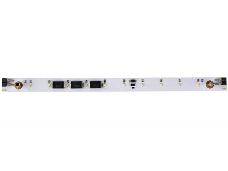 Für Minitrix Personenwagen mit einer Länge über Puffer von 165 mm (Ausnahme sind Personenwagen auf Basis der Silberlinge) und mit Stromaufnahme von jeweils einem Leiter je Drehgestell. Mit Anschlußbuchse für Personenwagen mit beleuchtetem Zugschlusssignal ab dem Produktionsjahr 2025. Bestehend aus einer LED-Lichtleiste (warmweiß) und Schleiferfedern. Die LED-Lichtleiste ist mit einem Elko zur Energiepufferung (Flackerschutz) und einem Dimmer (Poti) ausgestattet.