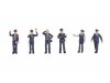 Die Lokführer tragen die für die damalige Zeit typische schwarze Uniform und schwarze Kappen. Da die Arbeit auf den sogenannten Dampfrössern sehr staubig und rußig war, bot sich unempfindliche schwarze Arbeitskleidung an. Die Lokführer stehen in typischer Haltung und sind jeweils paarweise einsetzbar. Ein Lokführer steht rechts im Führerstand, legt den Arm auf und...