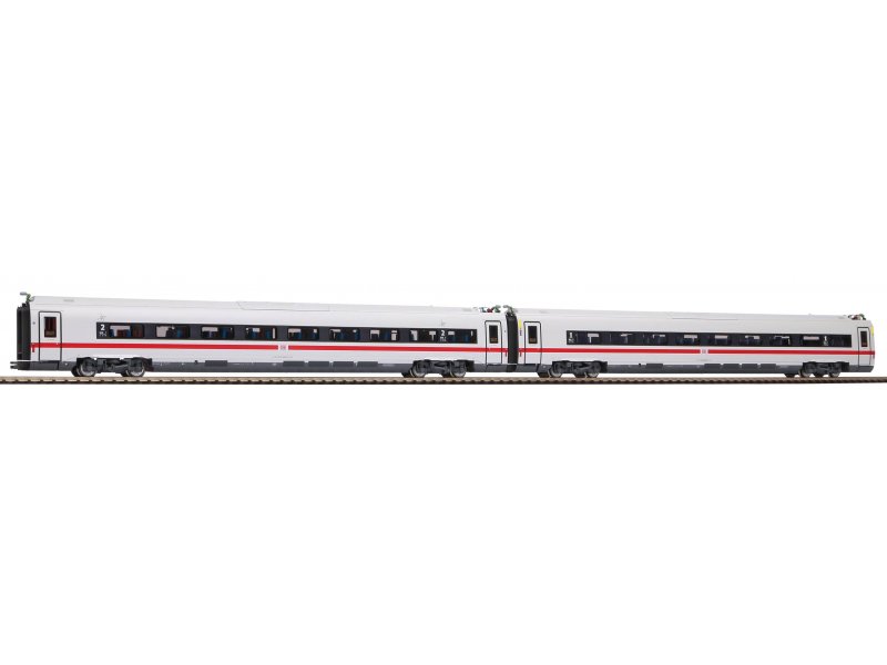 2er Set Ergänzungswagen zum PIKO ICE 4 der DB AG Ep. VI. Die Deutsche Bahn AG beauftragte 2011 Siemens Mobility mit dem Bau von bis zu 300 neuen Hochgeschwindigkeitszügen für den Einsatz in Deutschland, Österreich und der Schweiz. Die neuen Triebzüge der BR 412/812, die gemeinsam von Siemens und Bombardier entwickelt werden, werden über mehrere Wagen, sogenannte Powercars, angetrieben. Die Zugkonfiguration sieht hierbei verschiedene modular aufgebaute Einheiten von fünfteiligen bis zu 14teiligen Zügen vor. Durch dieses Konzept kann der Zug problemlos an die individuellen Vorgaben der Verkehrsunternehmen bei der gewünschten Beschleunigung, Geschwindigkeit und Zahl der Sitzplätze angepasst werden. Die DB hat bisher als Basiskonfiguration85 zwölf- und 45 siebenteilige Triebzüge bestellt, die aus antriebslosen End- bzw. Steuerwagen, angetriebenen Sitzwagen und Bordbistro sowie nichtangetriebenen Sitz-, Speise- und Servicewagen bestehen.Der siebenteilige Triebzug besitzt drei angetriebenen Wagen und bietet 456 Sitzplätze auf einer Länge von 200 Metern. Ein zwölfteiliger Triebzug verfügt über sechs angetriebene Wagen und 830 Sitzplätze auf einer Länge von 346 Metern. Die Höchstgeschwindigkeit beträgt mit 250 km/h. Die äußere Form wurde an die bestehende ICE-Flotte angelehnt und weiterentwickelt. Seit Dezember 2017 werden die ersten Züge im Regelbetrieb auf den Linien Hamburg–Würzburg, Stuttgart–München und Hamburg–Berlin–München eingesetzt.