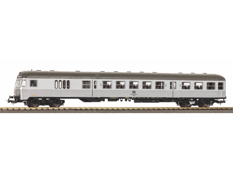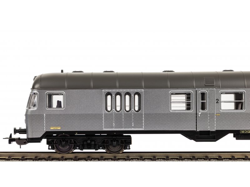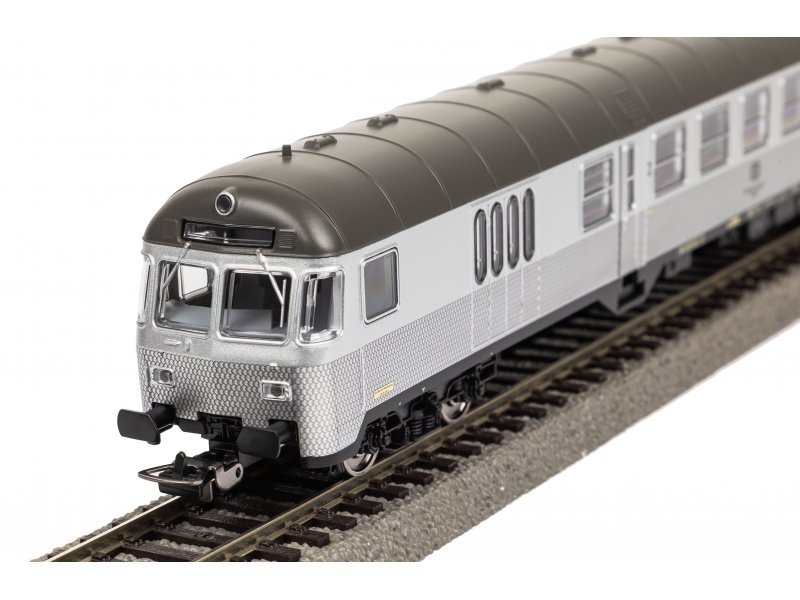 Nahverkehrssteuerwagen "Silberling" 2. Klasse DB IV "Karlsruher Kopf" Neuheit 2025: Der ikonische silberne n-Steuerwagen mit Karlsruher Kopf der DB in Epoche IV. Neben der ansprechenden Optik überzeugt das Modell auch durch die hervorragenden Laufeigenschaften und ist für die unkomplizierte Nachrüstung eines Funktionsdecoders vorbereitet.