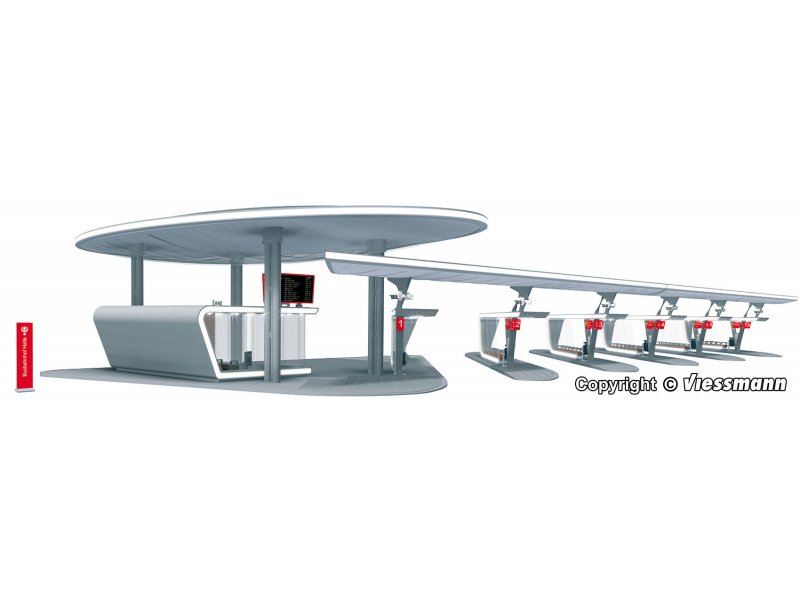 1 x 39006 H0 Moderner Busbahnhof Hauptgebäude mit einer Haltestation inkl. LED-Beleuchtung