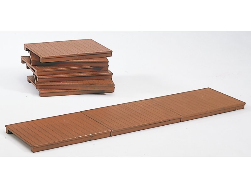 G Holz-Gehsteige (6 Stück) Side Walks sind Holzbretter, die auf einem schmalen Balken befestigt sind. Eine ideale Ergänzung für Ihre Western-Stadt. Inhalt: 6 Gehsteigplatten inkl. Befestigungselementen Abmaße: 12,5cm x 8cm x 1cm