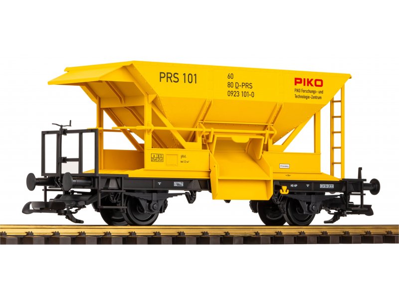 Druckvariante des Selbstentladewagens mit Bahnbau-Beschriftung in Epoche VI. Mit dem PIKO Modell ist es möglich, wie beim Vorbild Sand und feinen Kies über die verschiedenen Klappen zu verteilen.