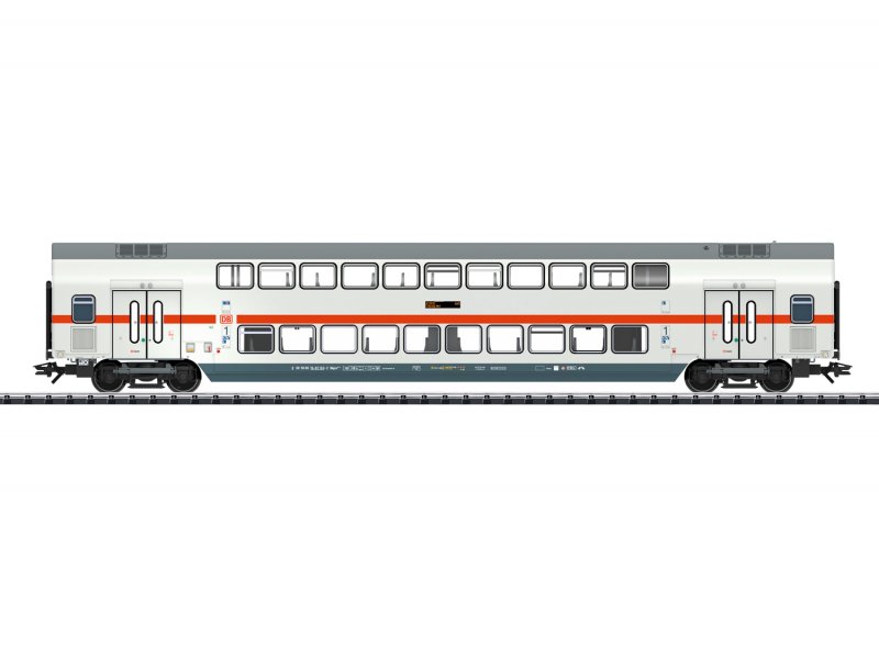 Mit Hoch-Einstieg über den Drehgestellen. Serienmäßig mit eingebauter LED-Innenbeleuchtung auf beiden Ebenen und stromführenden, trennbaren Kurzkupplungen. Beleuchtete längsseitige Zugzielanzeigen. Innenbeleuchtung funktioniert nur im Verbund mit dem Doppelstock-Steuerwagen und kann über einen Decoder im Steuerwagen digital ein- und ausgeschaltet werden. Dazu ist eine definierte Fahrzeugreihenfolge vorgegeben. Stirnseitig rot transparente Schlusslicht-Einsätze an den Wagenenden. Vorbildgerechte Drehgestelle der Bauart Görlitz, mit angesetzten Klapptrittstufen. Befahrbarer Mindestradius 360 mm
