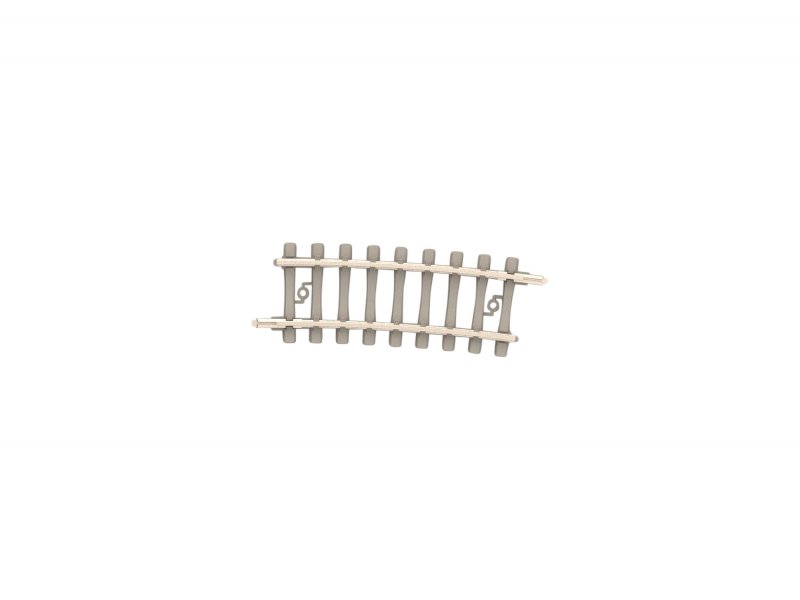 Die Abbildung zeigt ein Gebogenes Gleis mit Betonschwellen 295,4 mm Das Minitrix Schienenprofil orientiert sich am Vorbildprofil UIC 60 und setzt korrekt Code 60 nach NEM um Die Gleise in grauer Betonschwellenoptik besitzen Vollprofilschienen aus einer rostfreien Speziallegierung Material und Gleisprofil bieten sicheren Kontakt für die Stromübertragung zum Rad Der Abstand zwischen der Mitte zweier Gleise beträgt 33,6 Millimeter