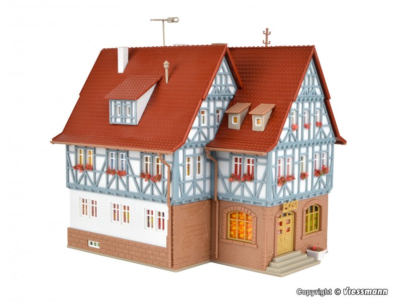 Produktinformationen "H0 Gasthof zur Post mit LED-Beleuchtung, Funktionsbausatz" Im Gasthof zur Post geht im wahrsten Sinne des Wortes die Post ab. Im Nebenhaus der kleinstädtischen Poststelle hat dieser Gasthof sein Quartier bezogen. Das liebevoll gestaltete Gebäude und die ländliche romantische Atmosphäre lassen uns den Alltag für ein paar Stunden vergessen. Mit der beiliegenden LED-Innenbeleuchtung setzen Sie den Artikel ins rechte Licht.