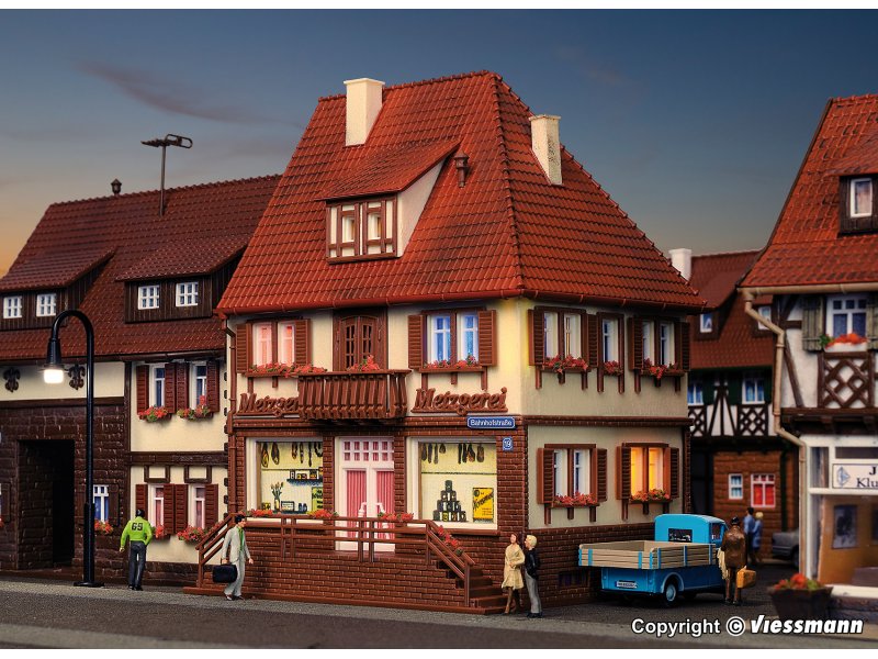 Mit den Bausätzen der Bahnhofstraße 9 – 19 können Sie einen kompletten Straßenzug mit Wohn-, Geschäfts- und Fachwerkhäusern gestalten. Bereits mit 4 Bausätzen schaffen Sie sich eine abwechslungsreiche Häuserfront.